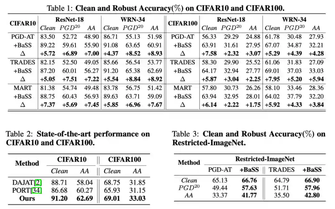 我们利用BaSS策略修改输入图像,并结合PGD-AT、TRADES和MART训练模型。