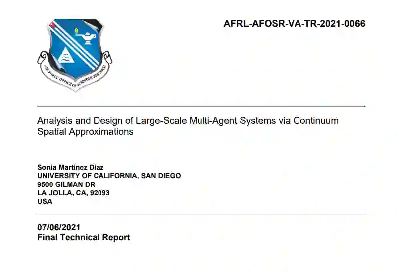 这项研究工作一直由加州大学圣地亚哥分校的马丁内斯博士领导。这项工作对自主性科学的发展产生了特别的影响,其重点是分析和设计用于协调超大规模(空间)网络的算法。为大规模系统开发有效的算法仍然是一个挑战,并使大型网络系统的运行往往难以解决。文献中考虑的处理大规模系统的两个主要方法是:a)直接采用最初为小规模多智能体系统开发的算法来处理大型集合体,或者b)将为大规模系统开发的算法离散化,以实现小规模群体。这两种转化方式都不是最佳的,因为错过了两者之间的关系,我们可能得到的算法是:i)不必要的保守,ii)没有捕捉或利用大规模效应(单个智能体可以忽略不计)及其对性能的影响,以及iii)没有捕捉大型动态系统所关注的基本几何特性(或结构)。另一方面,如b)中开发的算法通常i)不考虑由各种类型的多智能体分布式互动或其他限制(如无坐标算法或碰撞限制)给出的小型网络约束。正因为如此,我们试图研究多尺度算法,这些算法在每个尺度(N≈∞和N小)上都分别可能是正确的,并且可以从彼此之间正确转换。一个特别有意义的结果是对经典的最优运输问题和为多智能体系统开发的覆盖控制算法之间的关系有了新的理解。通过这样做,我们已经能够解释小规模群体的不同覆盖控制指标如何转化为大规模群体的最优运输目标。与直觉相反,正确的协调问题可以正确地转化为有意义的大规模版本,它是由 "公平的 "覆盖控制问题公式给出的。