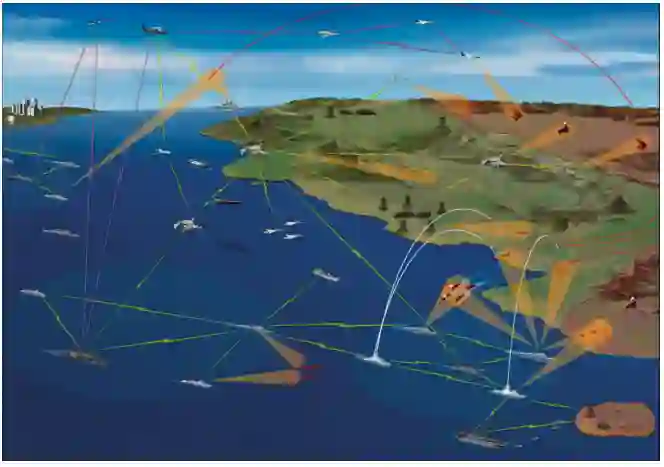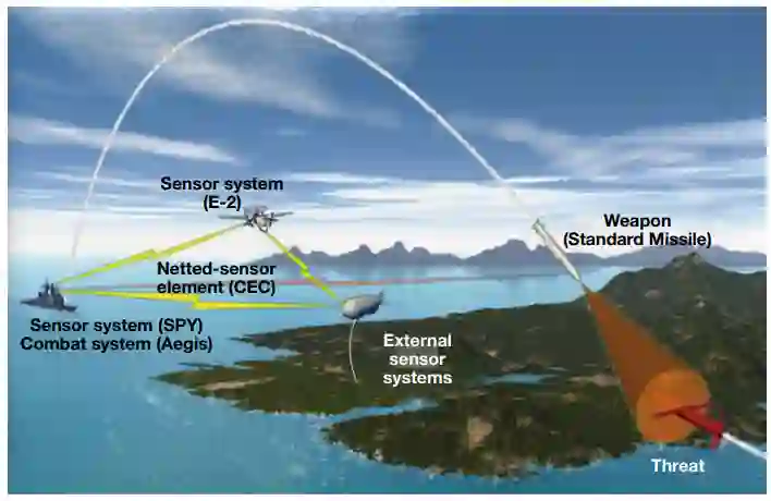 图6. NIFC-CA概念和系统要素。这种能力利用高位传感器系统扩展了交战空间,以实现超视距态势感知和火力控制交战能力。