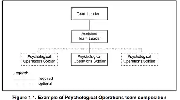 第一章阐述了战术心理作战单位是如何编成的。这包括被指派在战争战术层级执行影响力活动的分遣队和小组的职责与责任。本章还详述了通过训练达成高度技术和战术能力的重要性。