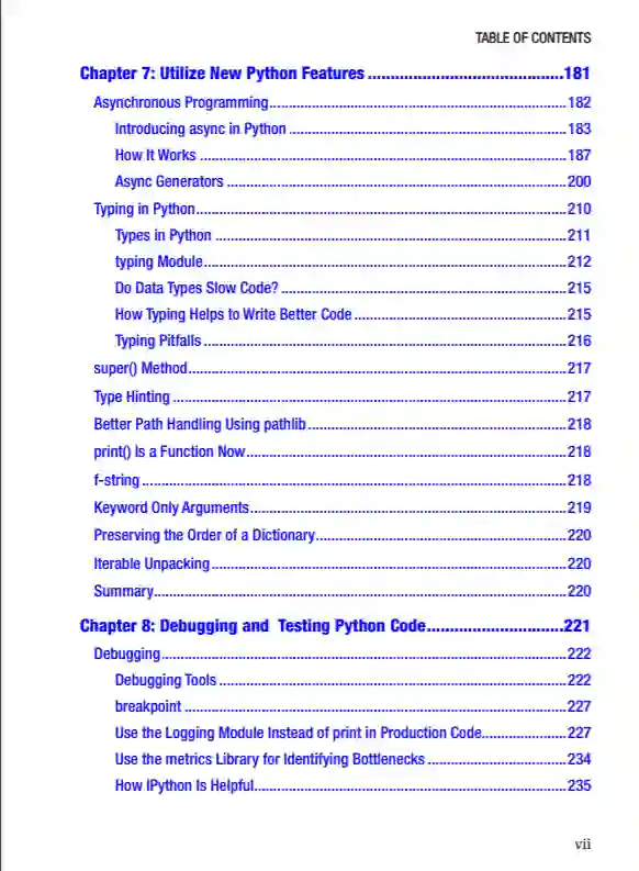 要获得更好的代码,首先要理解对代码进行格式化和编制文档以获得最大可读性的重要性,利用内置的数据结构和Python字典来提高可维护性,并使用模块和元类来有效地组织代码。然后,您将深入了解Python语言的新特性,并学习如何有效地利用它们。接下来,您将解码关键概念,如异步编程、Python数据类型、类型提示和路径处理。学习在Python代码中调试和执行单元测试和集成测试的技巧,以确保您的代码可以投入生产。学习旅程的最后一段为您提供了版本管理、实时代码管理和智能代码完成的基本工具。 在阅读和使用这本书之后,您将熟练地编写干净的Python代码,并成功地将这些原则应用到您自己的Python项目中。