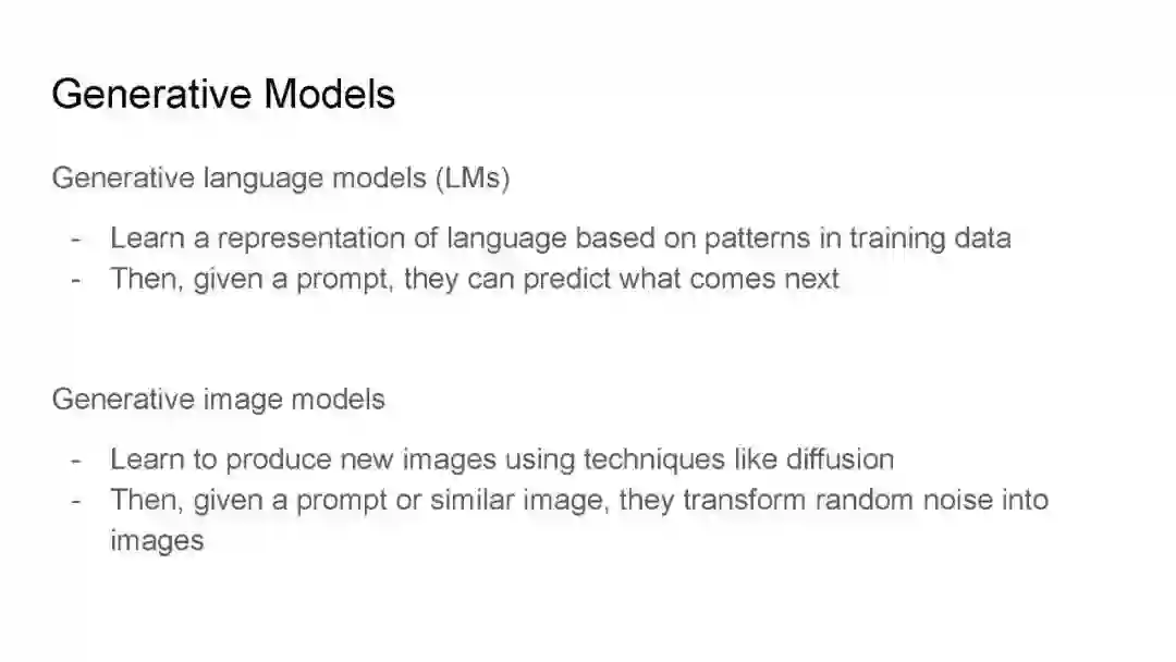 这个教程将分为两部分:(1)对生成式AI领域的技术深入探讨,包括进展、挑战和机会;(2)包括隐私、同意和负责任发布的伦理考量,以及减轻伤害和长期规划的方法。 生成式 AI 领域的介绍和概述 介绍 ML 中的生成式 AI 领域,并用一些问题激发话题。什么构成生成式 AI?为什么生成式 AI 是一个重要的话题?这个研究领域的起源是什么?