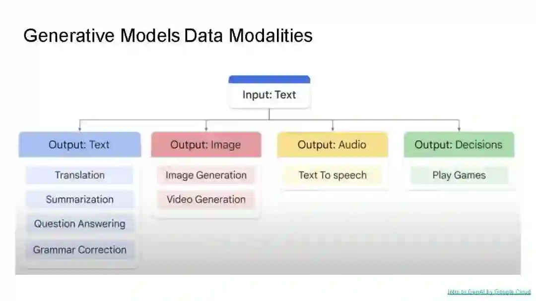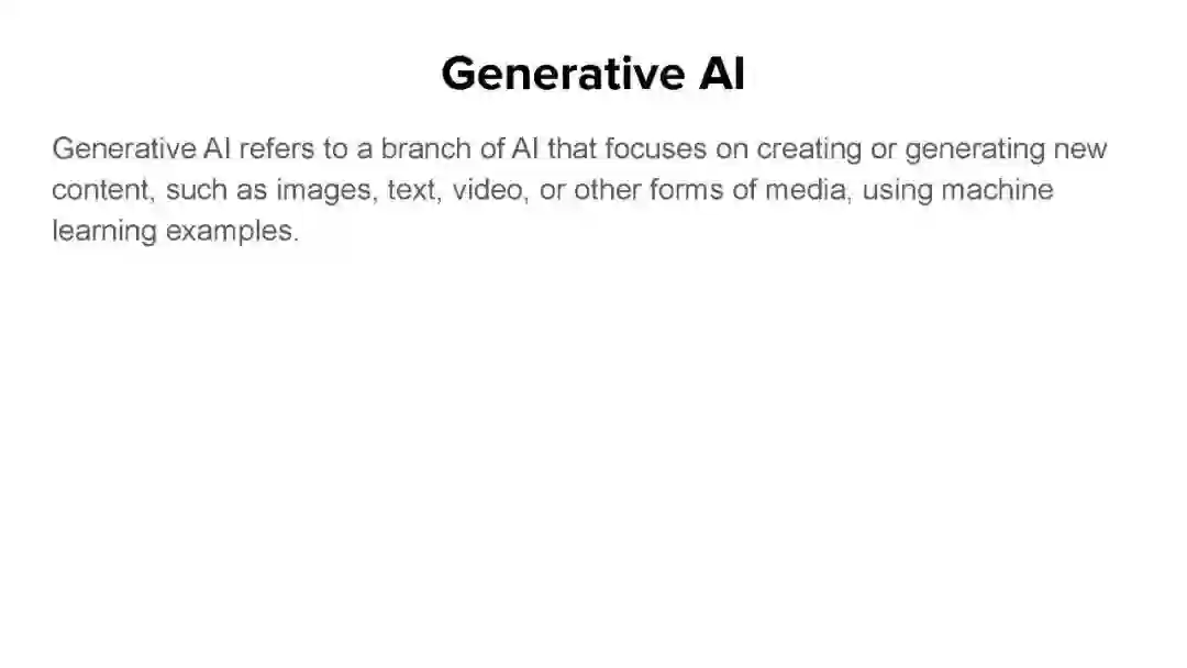 (2)生成式 AI 的应用 - 图像、音乐、文本、代码、视频。