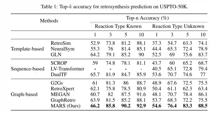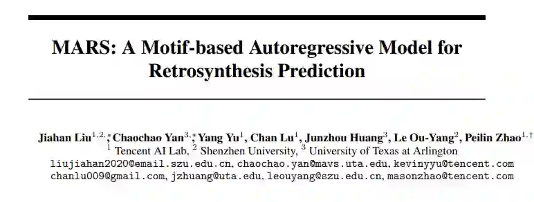 今天给大家介绍腾讯AI Lab赵沛霖博士团队以及德克萨斯大学阿灵顿分校黄俊洲教授团队、深圳大学欧阳乐教授团队近期(20220922)上传到ArXiv上的论文“MARS: A Motif-based Autoregressive Model for Retrosynthesis Prediction”。这篇论文将逆合成预测问题建模为图生成问题,并提出新的端到端训练的自回归模型。标准数据上的实验证明,对比于SOTA方法,所提出的模型有了重大提升。