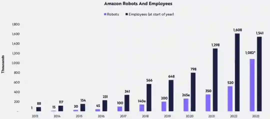 Big Ideas 2024 人工智能和硬件的融合将成为推动机器人技术的新的增长点,根据赖特定律,随着硬件和软件成本的下降,人工智能将会继续提高生产力,并为通用机器人创造新的市场机会,每年的收入超过24万亿美元。 ARK认为,工业机器人的成本随着产量每增加一倍就会下降50%,计算机视觉和深度学习的进步使机器人性能在七年内提高了33倍。协作机器人和人类可能会一起工作,将人类从繁琐的体力任务中解放出来。