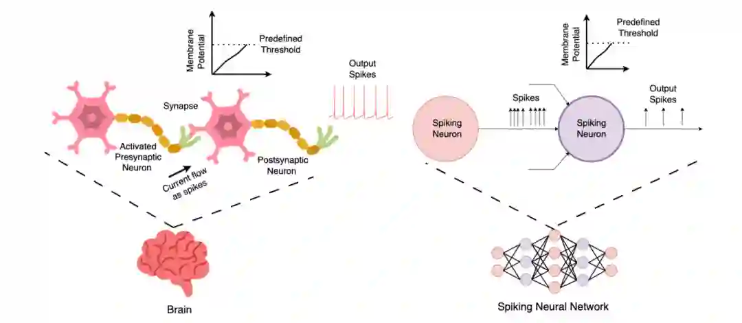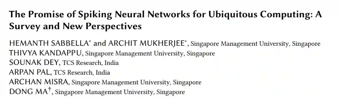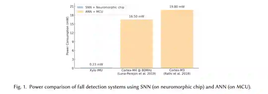 时间序列传感器数据是许多普适计算和机器人应用的基础,涵盖了从使用移动设备和可穿戴设备进行生理健康监测到机器人在动态环境中导航等多个领域。这些应用处理连续的传感器信息流,以做出实时决策【26, 31, 114, 124】,其中的挑战在于平衡推理准确性与资源效率。例如,用于早期检测心血管疾病的可穿戴设备必须处理高频数据流,同时保持电池寿命【179】。类似地,在执行搜救任务的自主机器人需要分析动态的多模态输入,如激光雷达、相机和惯性传感器,同时确保快速响应时间和能源节约【172】。这些场景突显了对于数据处理技术的关键需求,即能够处理流式传感器数据,且在确保准确性的同时具有计算效率,从而能够在资源受限的普适设备上持续执行。 近年来,机器学习模型,特别是像递归神经网络(RNNs)、长短时记忆网络(LSTMs)、卷积神经网络(CNNs)和变换器(Transformers)这样的深度学习架构,在从时间序列数据中提取有意义的模式方面展示了巨大的潜力,有效减轻了来自上下文噪声的干扰【142】。然而,这些模型通常计算密集,可能不适合在资源受限设备上进行实时推理。为此,研究人员探索了各种策略,以适应深度学习模型在普适系统中资源有限的特点,包括模型压缩技术(如剪枝【89, 102, 119, 128, 143】、量化【88, 162, 210】和知识蒸馏【14, 91, 162】)、轻量级架构【94, 193, 235】和低功耗优化【110, 155, 177】。 尽管有这些努力,传统的人工神经网络(ANNs)在有效监控普适计算环境中的上下文方面仍然面临重大挑战。这些挑战主要来源于两个关键因素:(1)离散信息处理——人工神经网络以离散块的方式处理信息,通常会在特定时间段内聚合传感器数据(称为“检测窗口”),并独立处理每个块,而不考虑跨块的时间依赖关系。为了避免漏检,连续窗口通常会重叠,从而导致相同数据被多次处理,增加了计算和能源开销。(2)连续值表示——人工神经网络通常处理连续值数据,通常以浮动点数的形式表示。这种表示方法,加上大量的模型参数和激活函数,会导致显著的能源消耗和内存开销。 相比之下,脉冲神经网络(SNNs)提供了一种根本不同的、生物启发的神经计算模型,能够帮助克服这些挑战【82】。具体来说,SNNs通过使用离散脉冲进行通信和计算,模拟人脑中神经元的行为。与连续值表示不同,脉冲是轻量级的,仅需一个位的信息(1 或 0)。此外,SNN神经元随着时间积累信息,仅在必要时才生成脉冲,从而减少了计算负载和能源消耗。例如,如图1所示,我们实验发现,使用SNN进行跌倒检测(在类脑硬件上实现)时的功耗显著低于使用人工神经网络(在传统微控制器(MCUs)上实现)的功耗(减少了71倍)。这种事件驱动的处理范式与传感器数据的时间性和动态特征高度契合,仅需处理发生在不规则时刻的显著事件或变化。此外,SNNs可以自然地编码时间信息,使其特别适合涉及时间依赖数据和实时数据流的任务【136】。 近年来,SNNs因其卓越的能效和实时处理能力,受到了显著关注,并被视为资源受限和时间敏感应用的有前景的新方向。例如,近期的研究集中于:(a)改进SNN模型训练和架构设计【50, 129】;(b)设计和实现旨在以最小功耗执行不同规模SNN模型的能效类脑硬件【137】;(c)在各种可穿戴和移动应用中应用SNN模型,如手势识别【174】和生理监测【21】,以支持资源受限的低端设备上的持续实时操作。在这些进展的基础上,几篇文章系统性地回顾了SNN的广泛研究领域(总结见表1,按全面性组织),面向机器学习社区。具体来说,许多综述文章提供了SNN组件的全面基础概述,如神经元模型【65, 173】、编码方案【65, 166】和训练方法【35, 49, 65, 154, 160, 166, 173, 199, 217】,为有兴趣从事SNN开发的研究人员提供了通用的理论介绍。一些综述还对SNN的实现所需的软件【173, 217】和硬件【35, 166, 173】平台进行了分类。然而,由于SNN研究的快速发展,一些讨论的平台现在已经过时或不再维护。与此同时,最近的硬件和软件发展提供了更好的支持,适用于实时、低功耗的SNN应用,但尚未得到全面回顾。此外,这些综述中的大多数主要关注图像或视觉数据,只有少数(如【166, 173】)简要涉及时间序列数据。尽管SNNs因其固有的建模和利用时间动态的能力,特别适用于时间序列数据,但现有的综述中没有强烈关注时间序列作为一种模态,这一点在普适计算的背景下尤为局限,因为时间序列传感器数据是核心模态。 因此,在本综述中,我们旨在将SNNs引入到移动感知和普适计算社区,特别关注时间序列数据。对于该社区来说,时间序列传感器数据的高效处理至关重要,而SNNs固有的时间动态和能效特性将使其受益匪浅。为了填补现有SNN综述在普适应用方面的不足,我们回顾了76篇同行评审的文章,涵盖了计算神经学、上下文感知和类脑硬件等多个领域。我们根据与实际应用案例的相关性对这些文献进行了分类,并分析了基于SNN的处理如何与这些需求相契合。接着,我们提供了针对时间序列理解的SNN核心组件(如神经元模型、编码方案和训练方法)的定制概述。 此外,我们为有兴趣进入该领域的研究人员提供了可操作的指导和资源,包括对最新软件库和硬件平台的全面回顾。我们根据它们提供的支持类型(如仿真/开发)以及与特定硬件平台的兼容性,对近期的软件工具链进行了分类回顾。在硬件方面,我们根据平台对网络规模、低功耗操作