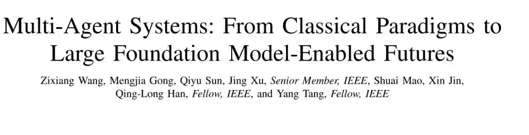 摘要——随着人工智能的飞速发展,多智能体系统(MASs)正从经典范式向基于大基础模型(LFMs)的架构演进。本文对经典多智能体系统(CMASs)与基于大基础模型的多智能体系统(LMASs)进行了系统性的综述与比较分析。首先,在闭环协作框架内,本文从感知、通信、决策和控制四个基本维度对 CMASs 进行了回顾。在此框架之上,LMASs 通过集成 LFMs,将协作从低层级的状态交换提升至语义级的推理,从而在多样化场景中实现更灵活的协作与更强的自适应性。随后,本文通过架构、运行机制、自适应性及应用场景等维度,对比分析了 CMASs 与 LMASs 的异同。最后,本文提出了对 MASs 的未来展望,总结了当前面临的挑战与潜在的研究机遇。