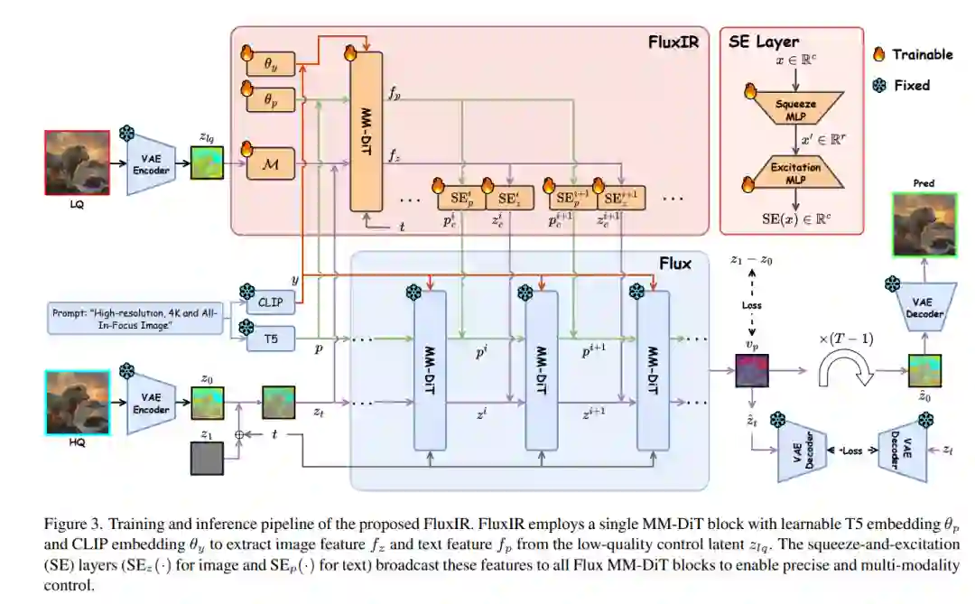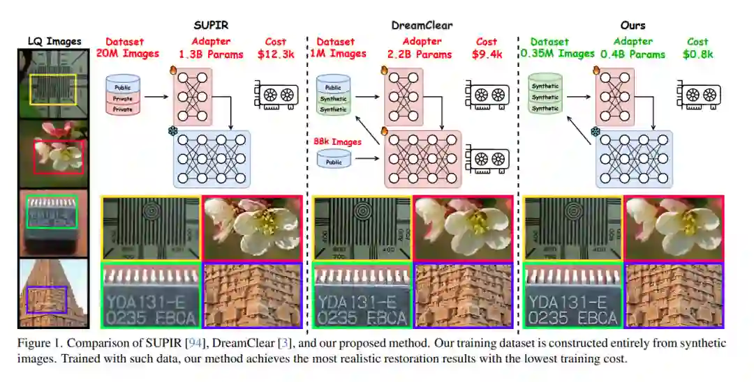 近年来,预训练的文本‑图像(T2I)模型凭借强大的生成先验,被广泛应用于真实场景的图像复原。然而,要让这些大型模型在图像复原任务中可控,通常需要大量高质量图像和巨额计算资源进行训练,既昂贵又不利于隐私保护。本文发现,经过充分训练的大型 T2I 模型(即 Flux)能够生成与真实分布一致的多样化高质量图像,可为训练提供近乎无限的样本,缓解上述难题。为此,我们提出了一条名为 FluxGen 的图像复原训练数据构建流程,包括无条件图像生成、图像筛选和退化图像模拟。我们还精心设计了一种轻量级适配器 FluxIR,其采用 squeeze‑and‑excitation (SE) 层来控制基于 Diffusion Transformer (DiT) 的大型 T2I 模型,从而恢复合理细节。实验证明,该方法能有效地使 Flux 模型适配真实场景图像复原任务,并在合成与真实退化数据集上取得了更优的定量指标和视觉质量——训练成本仅为现有方法的约 8.5%。
