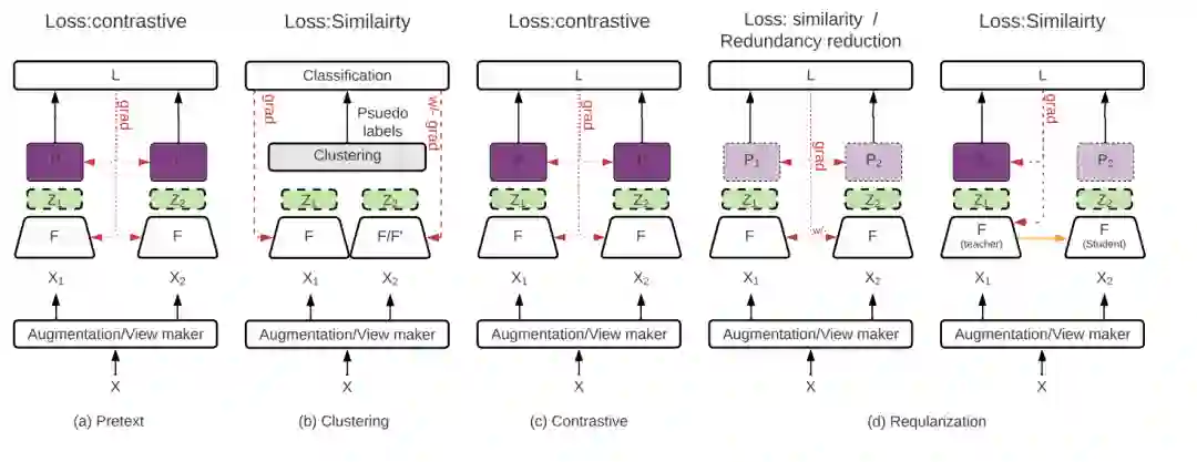 适用于所有基础架构和模式的自监督表征学习框架的类别。