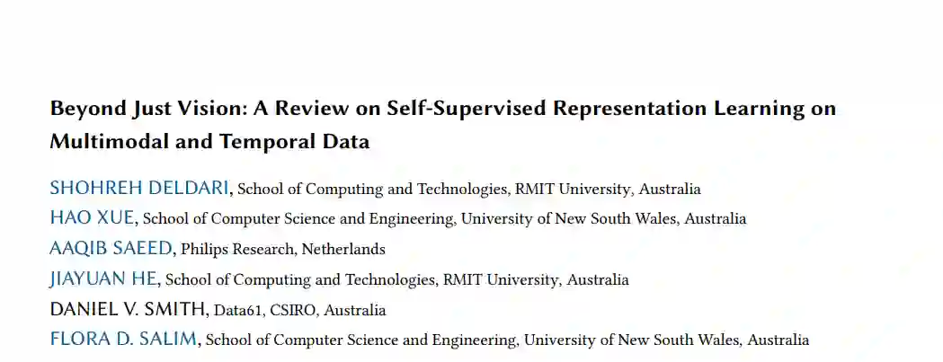 【导读】自监督学习是当下研究的热点。如何在多模态时序数据进行自监督表示学习?最新来自皇家墨尔本理工大学RMIT等学者发表了《自监督表示学习:多模态与时序数据》,首次全面综述多模态时序数据自监督学习方法,非常值得关注!