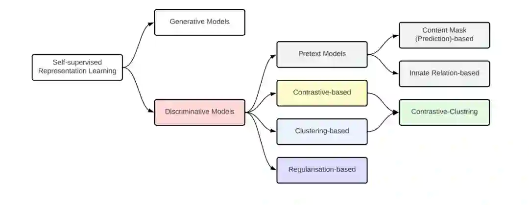 过去几十年,深度学习技术取得了巨大的成功,催生了大量面向大规模数据集的应用。尽管深度学习具有显著的影响,但许多最先进的技术仍然需要人工干预,例如手动数据预处理和数据注释。这是监督学习模型的一个主要瓶颈,因为获取数据注释通常是一个耗时的过程,需要一些领域知识。自监督表示学习(SSRL)解决了这一瓶颈,它试图通过从数据本身获得的监督信号来训练网络模型,从而揭示关于数据的有意义的信息。这大大增加了用于训练模型的数据带宽,并已被证明可以减少对手动数据注释的依赖[69]。这也可能被认为是迈向通用人工智能道路上的早期一步,因为与监督学习方法相比,计算机从观察数据中学习所需的人工输入要少得多。接下来,我们将概述表征学习和相关的自监督学习技术。