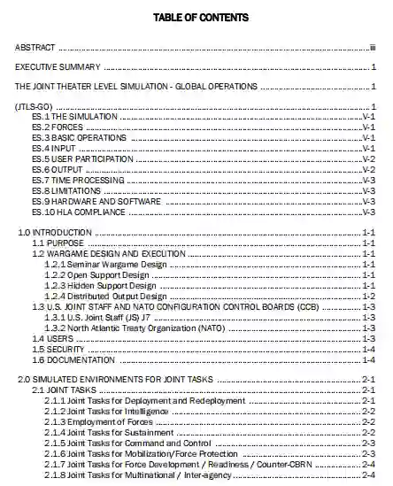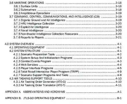 执行概述描述了模拟的基本操作,包括主要的软件程序和构成系统的众多小型支持程序。这些不同的、相互依赖的程序相互配合,以准备场景,运行模拟,并分析结果。本概述还提供了运行模拟系统所需的软件和标准硬件的描述。JTLS-GO可以在一台或几台计算机上同时运行,可以是单一的,也可以是多个分布的站点,这取决于训练或分析环境和场景的大小。它是独立于战场的,不需要编程知识就可以执行。第4页强调了一些新的模拟能力和特点。
