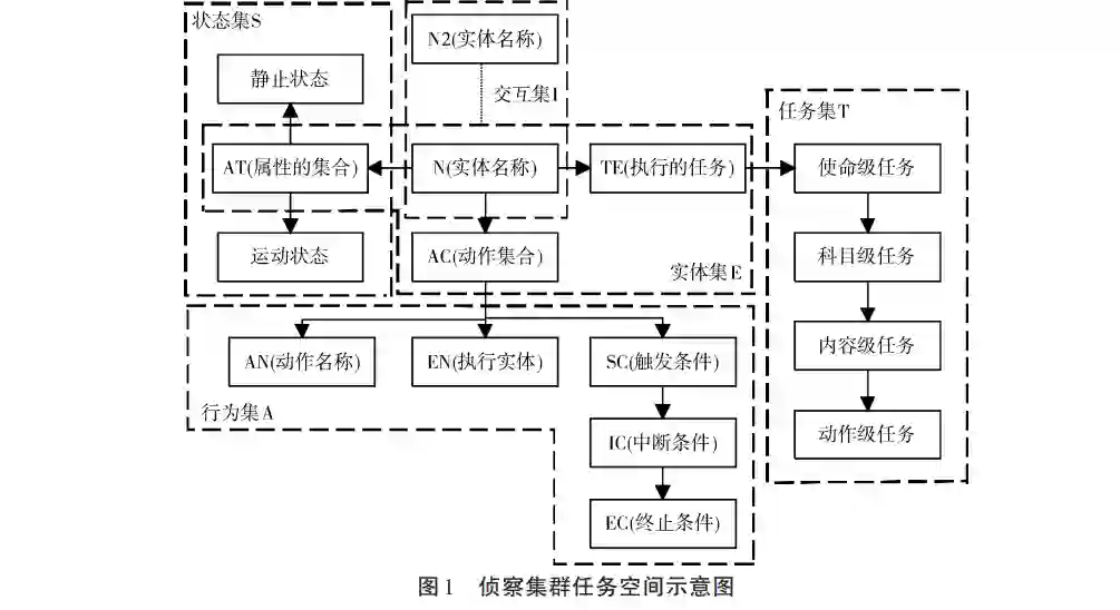 无人化、智能化、集群化是高端海战的发展方 向。随着侦察型无人潜航器作战能力的稳步提升, 集群式的运用也将使其成为水下攻防对抗体系中 侦察活动的新生力量。信息化战争绕不开作战问 题的“数理化”研究,军事建模是作战仿真的载体, 而概念建模是完整军事建模的初始阶段。因此,按 照“建模目的-建模方法-成果运用”的思路,研究 侦察型无人潜航器群(以下简称侦察集群)任务概 念建模,对作战仿真计算、创新战法训法、牵引装备 研发具有深刻意义。