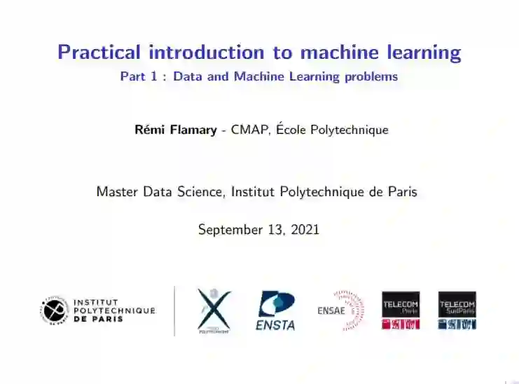 标准机器学习方法简介。允许您找到适合您的应用程序的问题/方法。为更深入的学习提供必要的词汇和工具。促进ML的良好实践、解释和重现性。