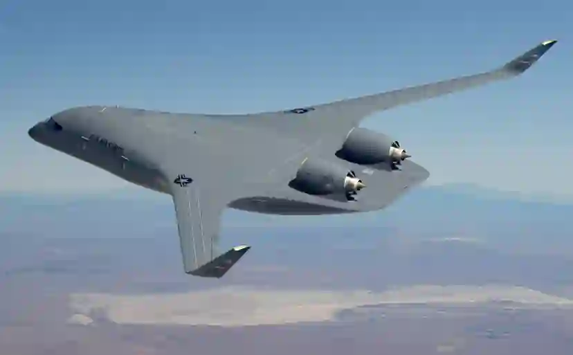作为 NGAL 计划的一部分,美国空军对混合翼身(BWB)设计很感兴趣。根据整体配置(如发动机的位置)的不同,混合翼身可以自然减小雷达截面(RCS),但其本身并不一定是一种隐身设计。由于机翼和机身都能产生升力,因此与传统的管翼式设计相比,BWB 可以实现更高的燃油效率,并提高航程和航速。2023 年 8 月,美国空军与总部位于加利福尼亚州的 JetZero 公司签订了一份合同,由该公司制造一种适用于货运或加油机的大型 BWB 演示机;飞行测试可能于 2027 年开始。该公司认为,这种飞机到 2030 年就可以投入生产,但对于一种尚未得到验证的设计来说,这个目标可能过于乐观。追求混合机翼机身概念的并非只有 JetZero 一家。2023 年 1 月,波音公司展示了一种混合翼身战术运输机的模型,该模型具有许多低可观察性特征;该公司警告说,这一概念仍处于早期开发阶段,并推测它可能在 2030 年代中后期投入使用。空中客车公司也提出了一种航程为 3 704 公里(2 000 英里)的生物战运输机的概念;虽然这种设计不是专门针对军事应用的,但也可用于空中机动行动。