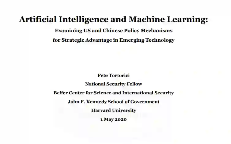 本文研究了最近五年来人工智能和机器学习的爆炸性增长,以及美国和中国为了解和利用这一技术以保持全球战略优势所做的政策努力。它试图从整体上研究每个国家的政策,为美国投资和应用人工智能和机器学习以支持国防和情报工作的未来道路提供建议。这项研究的前提是,人工智能/机器学习代表了一种基础性的通用技术,类似于电力或内燃机,在国家安全企业中有着广泛的应用,并对通过系统认知创造应用的国家有着巨大的优势。本文将首先走过相关的和适用的人工智能的创造以及它对当前国家安全工作的重要性和意义的例子。在研究了中国和美国政府最近的人工智能/ML政策以及每个政府如何对待和优先考虑人工智能/ML之后,将提供加强美国战略优势的建议以指导政策制定者。这项研究的最终目标是强调人工智能/ML将在下一次大国冲突中发挥关键作用,以及优先应用这项技术对美国战略优势的重要性。