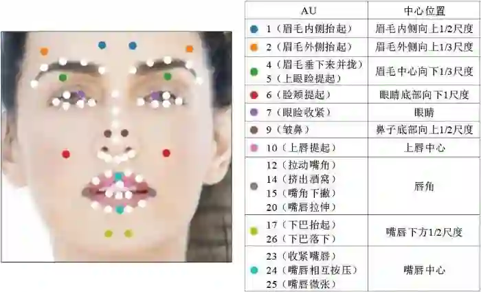 AU为人脸局部肌肉动作,因而提取其特征需要准确定位关联区域,每个AU的关联区域包括其所在部位以及存在一定关联的其他部位.