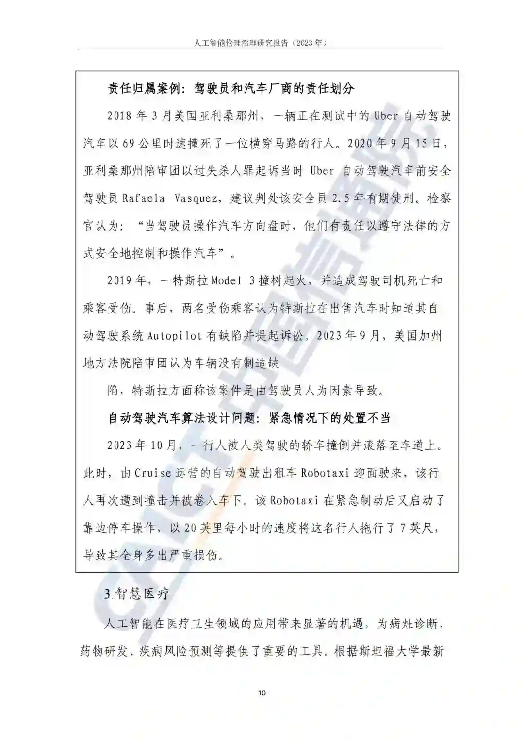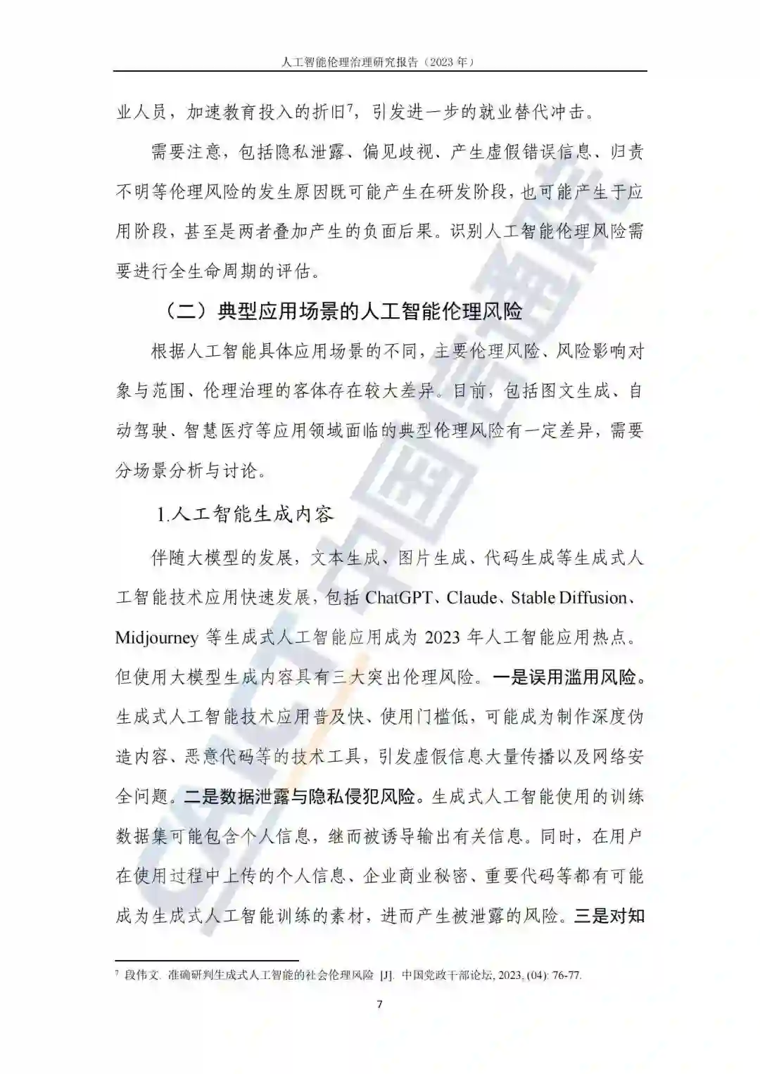 12月26日,中国信息通信研究院在“2024中国信通院ICT深度观察报告会”科技伦理治理分论坛上发布了《人工智能伦理治理研究报告(2023年)》。 报告在总结人工智能伦理治理有关概念和特点的基础上,对人工智能生成内容、自动驾驶、智慧医疗三个典型应用场景的伦理风险进行分析,并结合国内外人工智能伦理治理实践,提出人工智能伦理治理的四点展望,以期为更加广泛深入的讨论提供参考。
