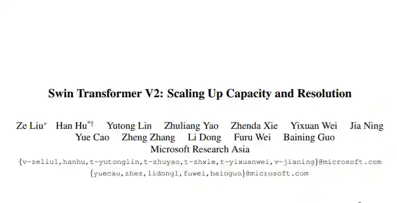 本文提出一种升级版SwinTransformerV2,最高参数量可达3 Billion,可处理尺寸图像。通过提升模型容量与输入分辨率,SwinTransformer在四个代表性基准数据集上取得了新记录:84.%@ImageNetV2、63.1 box 与54.4 max mAP@COCO、59.9mIoU@ADE20K以及86.8%@Kinetics-400(视频动作分类)。