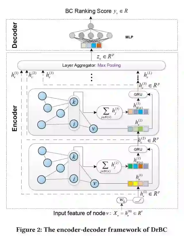 在这篇论文中,我们主要研究如何有效识别图中BC最高的top k节点,这是许多网络应用程序所必须完成的任务。与以往的启发式方法不同,我们将该问题转化为一个学习问题,并设计了一个基于encoder-decoder的框架作为解决方案。具体来说,encoder利用网络结构将每个节点表示为一个嵌入向量,该嵌入向量捕获节点的重要结构信息。decoder将每个嵌入向量转换成一个标量,该标量根据节点的BC来标识节点的相对rank。我们使用pairwise ranking损失来训练模型,以识别节点的BC顺序。通过对小规模网络的训练,该模型能够为较大网络的节点分配相对BC分数,从而识别出高排名的节点。在合成网络和真实世界网络上的实验表明,与现有的baseline相比,我们的模型在没有显著牺牲准确性的情况下大大加快了预测速度,甚至在几个大型真实世界网络的准确性方面超过了最先进的水平。