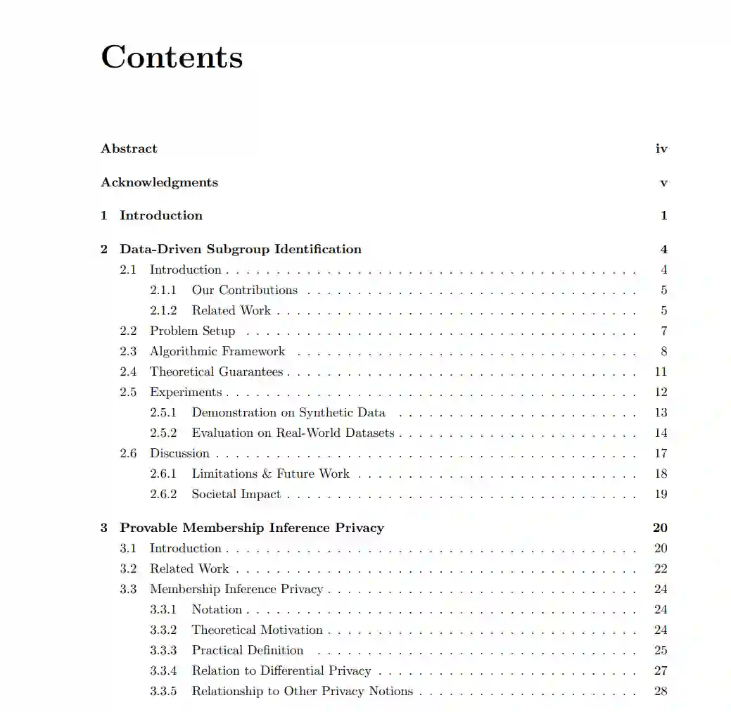 在过去的十年中,机器学习(ML)和人工智能(AI)研究已经取得了飞速的进步。到目前为止,大部分的研究都采用了模型中心化的方法:也就是说,数据集被视为已给定,研究人员不断迭代应用于这些数据集以提取有用信息的模型。这种模式下有一套标准的假设。例如,数据通常假设是从固定概率分布中独立同分布(i.i.d.)抽取的,此外还假设数据是固定的和给定的。通常还假设测试数据与训练数据来自同一分布,即不存在分布漂移。而且,通常唯一衡量成功的指标是模型的性能(如预测任务的准确率)。尽管这种范式已经带来了大量令人印象深刻的进步,但往往与数据科学家在实践中面临的情况相去甚远。例如,收集和策划一份高质量的训练集通常比使用更复杂的模型架构带来更大的收益。关于独立同分布的假设,在现实中,数据分布可能由于各种因素而不断变化,包括时间变化(如消费者偏好的季节性影响)和空间变化(如不同地理位置的医院患者分布不同)。在某些情况下,我们的模型本身可能导致数据分布的变化,特别是如果该模型被用于做出具有社会影响力的决策。最后,最近的立法,如加利福尼亚消费者隐私法案和欧盟的通用数据保护法规,要求在设计AI模型过程中也要考虑消费者隐私。也就是说,隐私以及模型性能,都是必须考虑的关键指标。 所有这些重要的实践问题都有一个共同的主题:它们更多地关联到数据本身,而不是训练在其上的模型。在这篇论文中,我们遵循这种数据中心的观点,并为数据通过典型的ML管道可能出现的问题提出新颖的算法。我们特别强调可以为每个提出的算法提供的可证明的保证。