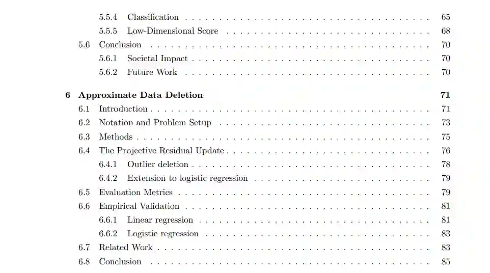 机器学习(ML)和人工智能(AI)在广泛的领域实现了非凡的、超乎人类的性能:包括计算机视觉、自然语言处理、蛋白质折叠等等。直到最近,大多数的进步都是采取模型中心化的方法,主要关注于改善神经网络架构(如卷积神经网络、残差网络、变换器等)和训练这些模型的优化程序(如批量标准化、dropout、神经结构搜索等)。相对来说,我们对用来训练这些模型的数据的关注度较低,尽管众所周知,机器学习对高质量数据的依赖可以用"垃圾进,垃圾出"这句话来精辟地概括。随着对越来越大且更复杂的模型(如Nvidia和Microsoft的5300亿参数的MT-NLG)的回报逐渐减小,研究人员开始认识到采取数据中心化方法的重要性,并开发了原理性的方法来研究这些模型的燃料:数据本身。数据中心视角不仅可以提高任务性能,还可以让我们考虑到一些社会关键考虑因素,如数据隐私。在本论文中,我们将对机器学习数据管道中的几个点进行深入分析:在模型训练前、训练中和训练后。在模型训练前,我们将探索数据选择的问题:应该用哪些数据来训练模型,我们应该期望我们的模型在何种类型的数据上工作?当我们进入模型训练时,我们将把注意力转向由我们的ML系统与其部署环境的交互可能导致的两个问题。第一个问题是数据隐私:我们如何防止我们的模型泄露有关其训练数据的敏感信息?第二个问题涉及一些被模型化的群体的动态性。特别是当我们的模型被用于做出具有社会影响力的决策(如自动贷款批准或推荐系统)时,模型本身可能会影响数据的分布,导致性能降低。最后,尽管我们在模型训练前和训练中遵循最佳实践,但可能在训练后我们希望对模型进行后处理,以移除某些训练后的数据的影响。如何以计算效率高的方式实现这一点呢?本论文将涵盖每一个先前问题的新颖解决方案,强调的是每一个提议的算法都有可证明的保证。通过将数学严谨性应用于具有挑战性的现实问题,我们可以开发出既有效又可信赖的算法。