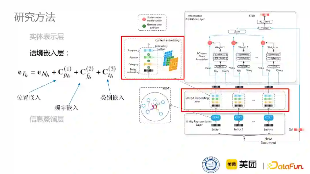 第二层是语境嵌入层,这一层主要考虑实体在新闻文章当中的嵌入特点,比如出现的位置是在文章的title里还是body又或者是出现的频次、实体类别是人物还是地点等等。这些信息对于实体信息都是有非常重要的作用,所以我们设计了语境嵌入层来更加全面地建模这个实体。