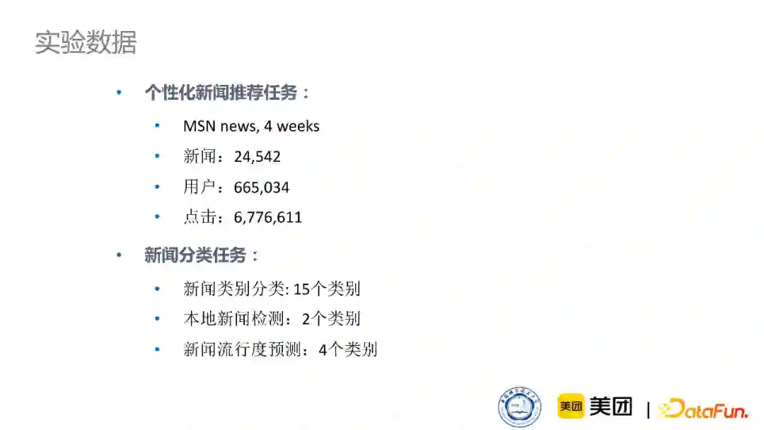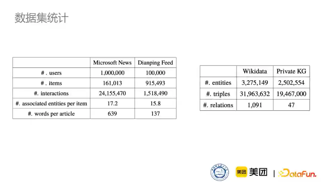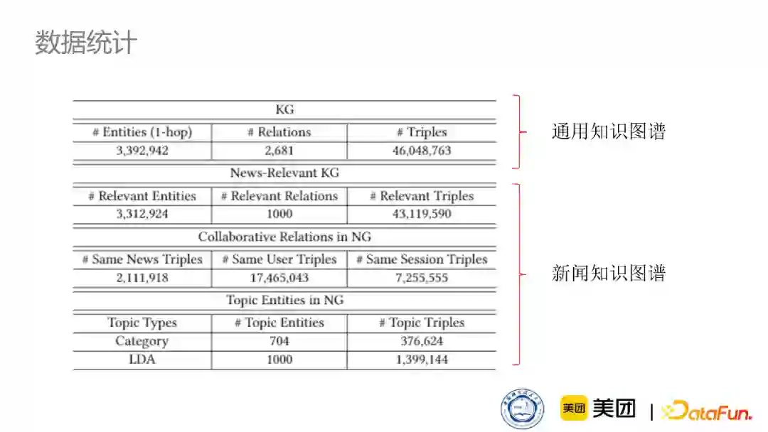 下图是我们的数据集,同时应用了Microsoft News还有美团的点评数据集。
