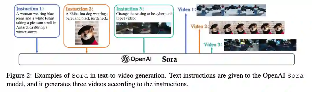 此外,Sora 的进步还体现在它能够生成具有细微运动和交互描绘的扩展视频序列,克服了早期视频生成模型所特有的短片段和简单视觉渲染的限制。这种能力代表了人工智能驱动的创意工具的飞跃,使用户能够将文字叙述转换成丰富的视觉故事。