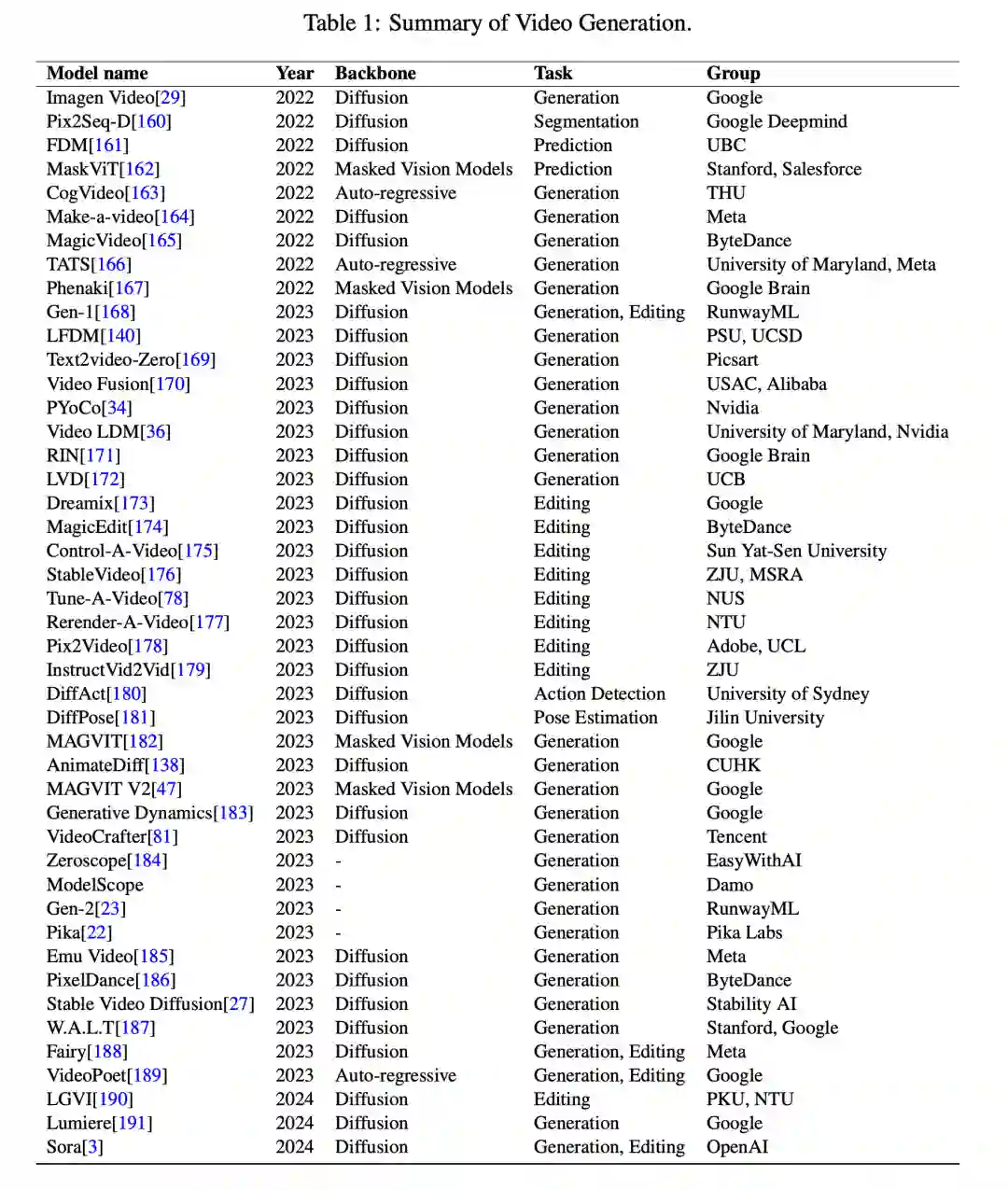 在本节中,研究者对 Sora 所使用的技术进行了逆向工程,并讨论了一系列相关工作。