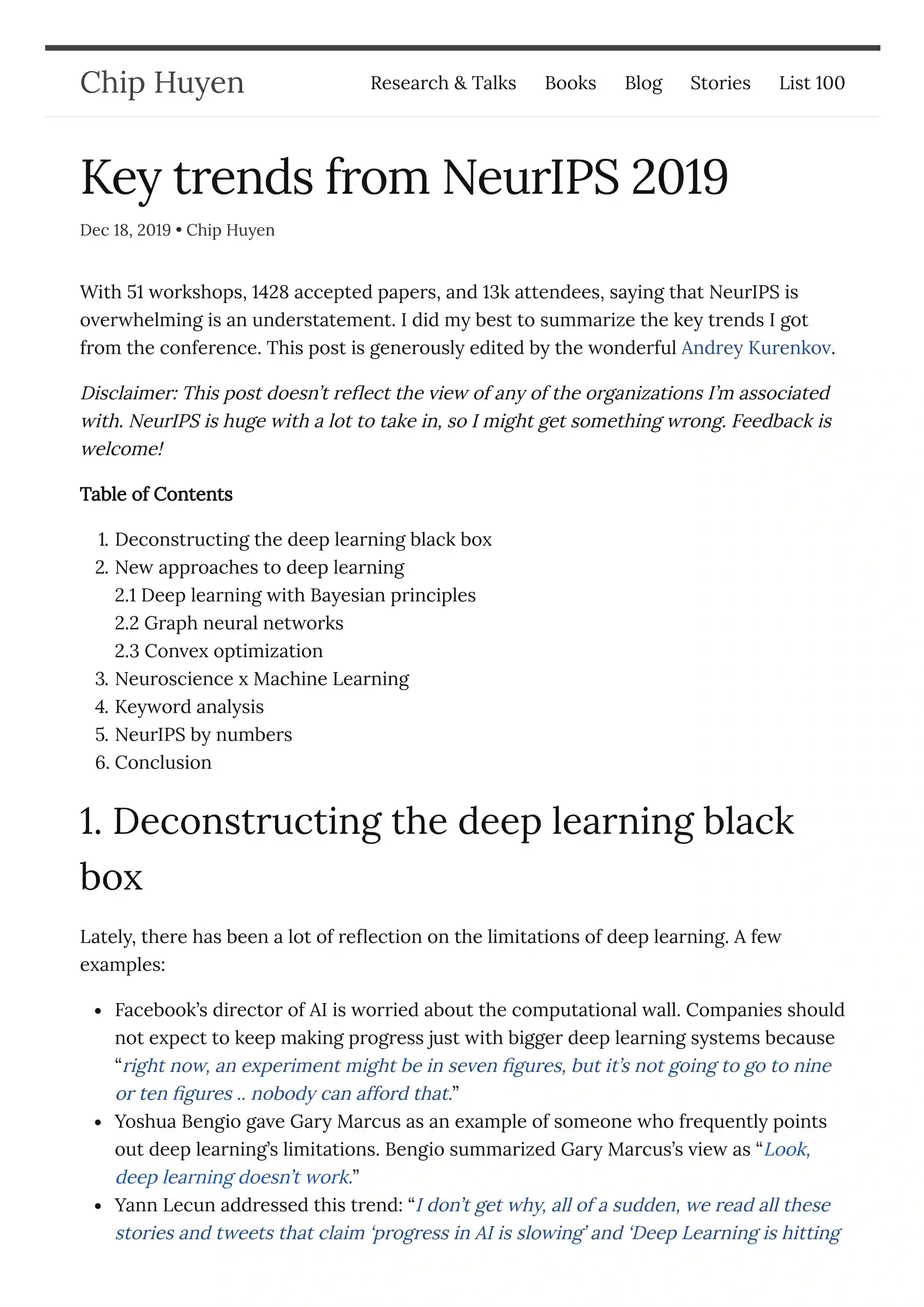 地址: https://huyenchip.com/2019/12/18/key-trends-neurips-2019.html
