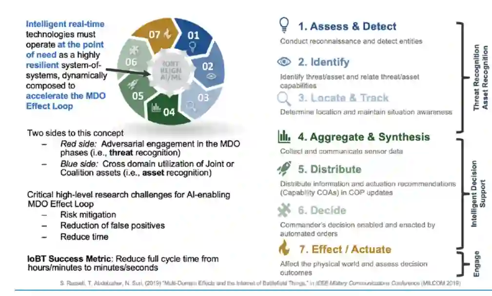 将多个领域的军事能力融合以提高效能的学说预示着国防的新时代,其特点是能够承受更高的作战规模和节奏,这得益于战场自动化和协作水平的提高。然而,要获得这些技术进步的潜在好处,前提是要找到应对无数挑战的成功解决方案,以便在竞争环境中实现智能、异构、交互资源的更高效和可扩展的操作。换句话说,提高防御能力的自动化和协作需要更智能的“战场操作系统”——一个在排除人类参与时间尺度上管理复杂自动化任务的系统,同时赋予作战人员足够的控制权。我们将此操作系统称为战场物联网 (IoBT)。