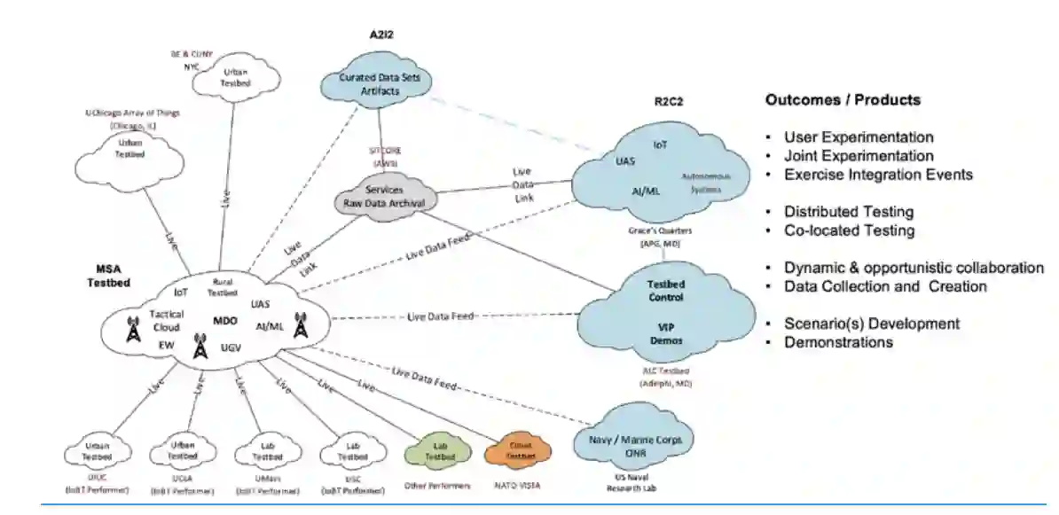 战场物联网协作研究联盟(由政府和学术界研究机构组成的联盟,由美国陆军作战能力发展司令部资助,称为 DEVCOM,陆军研究实验室 (ARL))针对上述挑战制定的解决方案是讨论了: