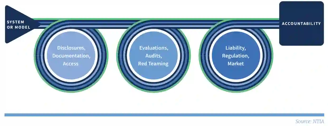 本报告将问责制视为一个投入与后果相联系的链条。报告重点关注信息流(文件、披露和访问)如何支持独立评估(包括红队和审计),而独立评估又如何反过来影响后果(包括责任和监管),从而形成问责制。报告最后提出了联邦政府的行动建议,其中一些建议详细阐述了《人工智能行政 命令》中的主题,以鼓励并在可能的情况下要求问责投入。