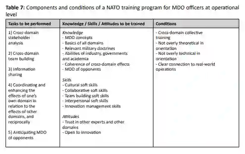 在军事行动中,跨越陆、海、空、天及网络空间的多域作战日益受到重视,其中技术与认知域作战扮演关键角色。然而,应如何以最佳方式为军官进行多域作战准备,目前尚不明晰。在国际环境中应用了一种军事设计思维方法,该方法汇集了来自不同专业背景的参与者,共同设计了一份作战层级多域作战培训方案的蓝图。本文发现为开发面向军官的多域作战培训方案提供了见解。