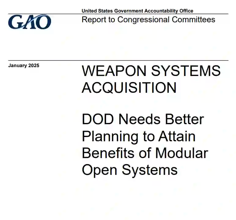 众议院和参议院的报告中都包含了美国政府问责局审查国防部使用MOSA情况的条款。本报告评估了(1)项目实施 MOSA 的程度和原因;(2)项目和组合对 MOSA 的规划;(3)军事部门对 MOSA 的必要资源投资;以及(4)国防部为 MOSA 制定的政策、法规和指南。