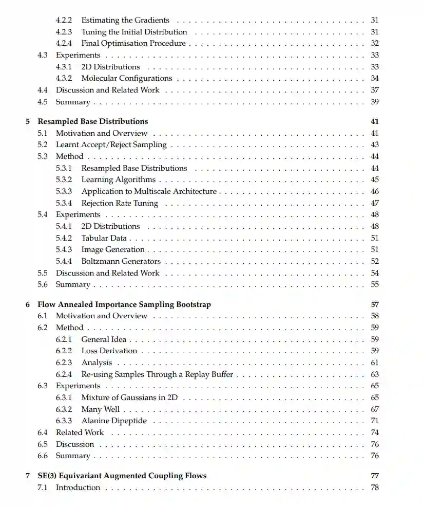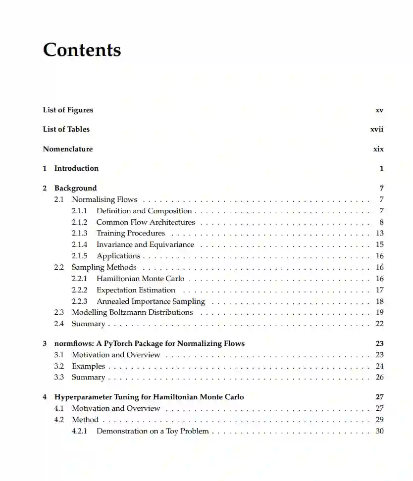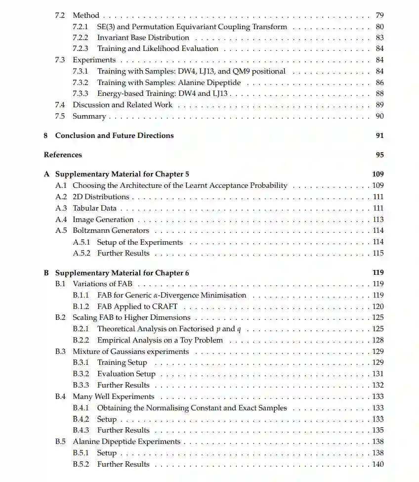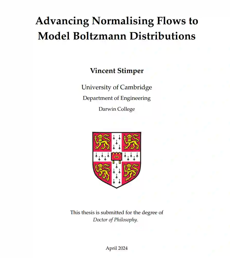 分子可以采取多种构型,它们以随机的方式出现,并遵循所谓的玻尔兹曼分布。对这种分布进行建模和采样对于许多应用至关重要,例如理解生化过程和疾病机制,以及发现药物。传统的玻尔兹曼分布采样方法成本高昂,而通过机器学习模型对其进行近似则提供了一种替代方案,这些模型可以作为代理。正规化流(normalising flows)是一种常用于此任务的可处理密度模型。本论文旨在改进实施、采样和训练正规化流的方法,并增强其架构,重点应用于玻尔兹曼分布的模拟。首先,本文介绍了一个用于在Python中实现正规化流的软件包。该软件包涵盖了大多数常见的流架构,并提供了许多特别有助于模拟玻尔兹曼分布的工具,例如用于建模周期性坐标(如角度)的采样层和流模型。接下来,本文提出了一种用于采样方法Hamiltonian Monte Carlo(HMC)的超参数调优过程。该过程在变分目标上运行基于梯度的优化算法。Hamiltonian Monte Carlo可以应用于正规化流之上,以增强其样本质量。通过我们的方法获得改进的超参数后,我们能够更准确地近似分子丙氨酸二肽的玻尔兹曼分布。第三,通过引入一种新颖的基础分布,我们使正规化流变得更具表现力。该方法通过带有学习的接受函数的拒绝采样改变了基础分布的拓扑结构,从而克服了正规化流的架构缺陷,并在多样化的应用中获得了更好的性能。此外,为了应对大多数流训练方法对数据的依赖性(这些数据通常生成成本高),我们引入了一种仅需要目标非标准化密度的技术。在训练过程中,我们从流模型中采样,并通过退火重要性采样(annealed importance sampling)将样本逐步移动到目标分布。通过这种方法,我们可以估计质量覆盖目标,并提高采样效率。利用这种方法,我们首次在没有任何训练数据的情况下,仅使用目标密度成功学习了丙氨酸二肽的完整玻尔兹曼分布。最后,我们将大多数物理系统所具有的旋转和平移对称性引入到流模型中。我们是最早在笛卡尔坐标系下学习丙氨酸二肽的玻尔兹曼分布的研究者之一,并且我们的方法比现有的竞争方法显著更快。
