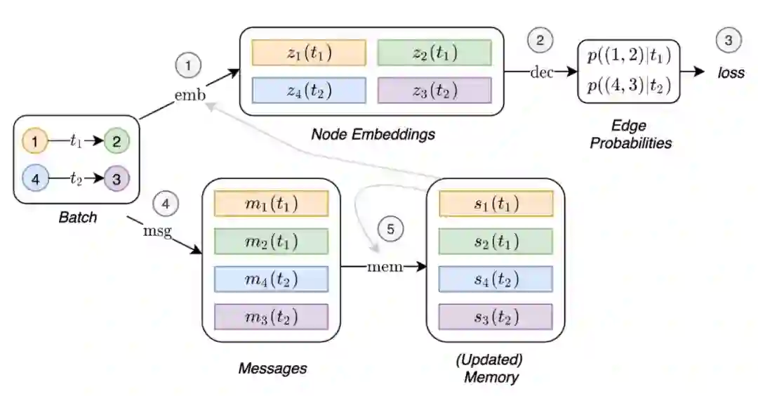 图神经网络(GNNs)最近变得越来越受欢迎,因为它们能够学习复杂的关系系统或相互作用,这些关系或作用来源于生物学和粒子物理学到社会网络和推荐系统等广泛问题。尽管在图上进行深度学习的不同模型太多了,但迄今为止,很少有人提出方法来处理呈现某种动态性质的图(例如,随着时间的推移而进化的特征或连通性)。在本文中,我们提出了时序图网络(TGNs),一个通用的,有效的框架,用于深度学习动态图表示为时间事件序列。由于内存模块和基于图的运算符的新组合,TGNs能够显著优于以前的方法,同时在计算效率上也更高。此外,我们还展示了之前几个用于学习动态图的模型可以转换为我们框架的具体实例。我们对框架的不同组件进行了详细的消歧研究,并设计了最佳配置,在动态图的几个转导和归纳预测任务中实现了最先进的性能。