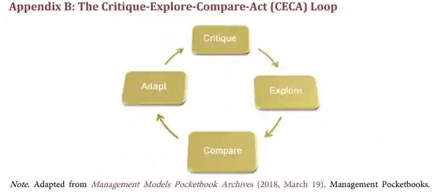 研究表明,CECA 循环展示了更好的决策灵活性,促使领导者通过比较概念框架及其当前的反映来考虑更多变量。OODA 循环已经过时,因为它缺乏灵活性,可能会因适应不足而带来不良后果(Bryant,2006 年)。因此,CECA 模型在这方面似乎也很有利。