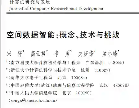 随着移动智能设备和移动通信技术的快速发 展,空间数据的采集变得日益普遍,使得大规模空间 数据在医疗、能源、交通等领域具有重要应用价值, 然而与空间大数据相匹配的信息处理、知识提取算 法仍是亟待研究的领域.此外,人工智能和数据挖掘 算法在近十余年来取得了长足的发展,我国也在近 年提出了促进人工智能和大数据国家战略,指出人 工智能和数据挖掘技术将成为发展国民经济水平各 领域的重要抓手.在空间数据智能研究中,如何有效 地实现空间大数据和人工智能研究的深度融合、再 创新是重要的未来发展方向.