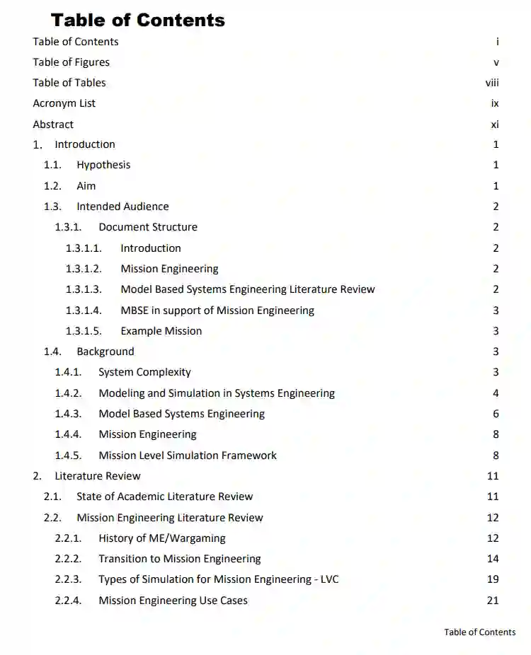 本报告研究了将基于模型的系统工程中的方法学进展和数字流程改进应用于任务工程使用案例的可能性。前提是基于假设:系统工程通过演变为更复杂的系统工程,已经接近于任务工程,在技术上有了联系。如果是真的,那么现在就有可能创建一条数字线,从最初的兵棋推演,通过任务工程指南和联合能力集成与发展系统的过程,变成能够在基于SysML的系统工程模型中消化和建立的需求。这将有助于提高自上而下需求的可追溯性和准确性,并有助于在任务层面进行自下而上的组件贸易研究,作为系统设计和开发的一部分。