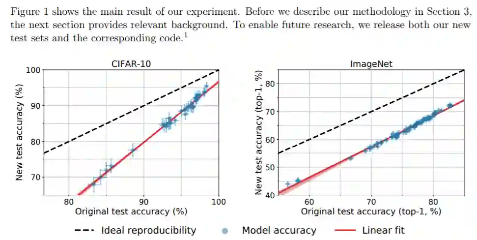我们为CIFAR-10和ImageNet数据集构建新的测试集。近十年来,这两种基准都是激烈研究的焦点,这增加了过度拟合过度重复使用测试集的危险。通过密切跟踪原始数据集的创建过程,我们测试了当前分类模型对新数据的泛化程度。我们评估了大量的模型,发现CIFAR-10的准确率下降了3% - 15%,而ImageNet的准确率下降了11% - 14%。然而,对原始测试集的准确性收益转化为对新测试集的更大收益。我们的结果表明,准确性下降不是由于自适应,而是由于模型不能泛化到比原始测试集发现的稍微“硬”的图像。
