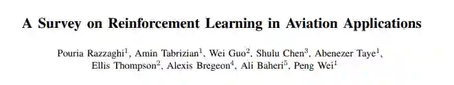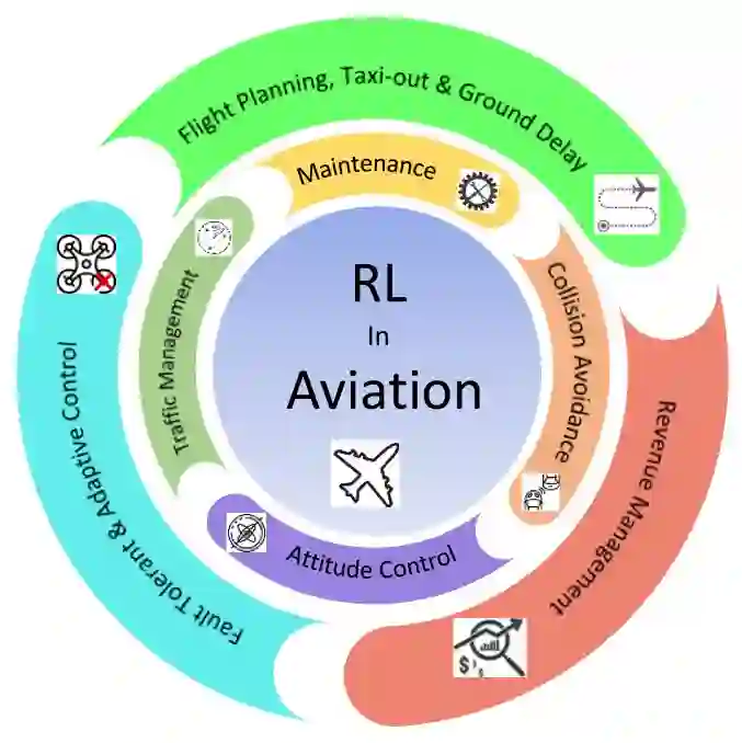 与基于模型的控制和优化方法相比,强化学习(RL)提供了一个数据驱动的、基于学习的框架来制定和解决连续的决策问题。由于航空业的数据可用性和计算能力的大幅提高,RL框架变得很有前途。许多基于航空的应用可以被制定或处理为顺序决策问题。其中一些是离线规划问题,而另一些则需要以在线方式解决,并且是安全关键问题。在这篇调查报告中,我们首先描述了标准的RL公式和解决方案。然后,我们调查了现有的基于RL的航空应用的情况。最后,我们对本文进行了总结,确定了技术上的差距,并提出了航空领域RL研究的未来方向。