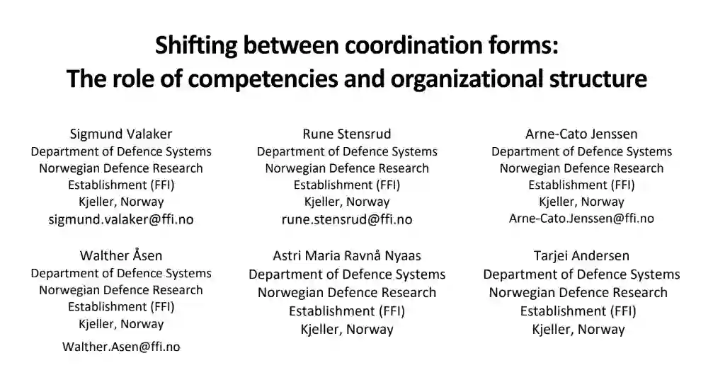 如何确保一个组织有能力在不断变化的不利环境下进行协调?以及如果需要的话,如何能够转移负责协调的人?这些都是努力实现复杂目标的军事和民事组织的关键问题。这方面的例子包括:陆海空军事资产或警察、卫生、消防部门等机构的整合。在这篇文章中,我们探讨了协调能力的特点和可能的影响,以及可用的协调形式,即谁可以被指定为协调。我们报告了一个军事组织的调查结果,用调查来阐明所需的能力,用演习中的沟通记录来阐明所使用的协调形式。关于能力,我们发现在联合层面上强调的是能够掌握协调的权力,在战术层面上强调的是对各种团队的理解,在次战术层面上强调的是对战术任务的具体专业知识。关于协调形式,我们发现在演习期间,组织的协调形式从等级制转变为更多的授权,然后又回到等级制。我们的发现阐明了为了协调,哪些类型的能力可以在组织成员之间分配。此外,所颁布的协调形式虽然有用,但可能限制性太强,无法实现向更分散的协调形式的转变。我们指出了对我们的假设进行操作分析测试的进一步方向,如通过更广泛的演习记录(如共同作战图)和表现。