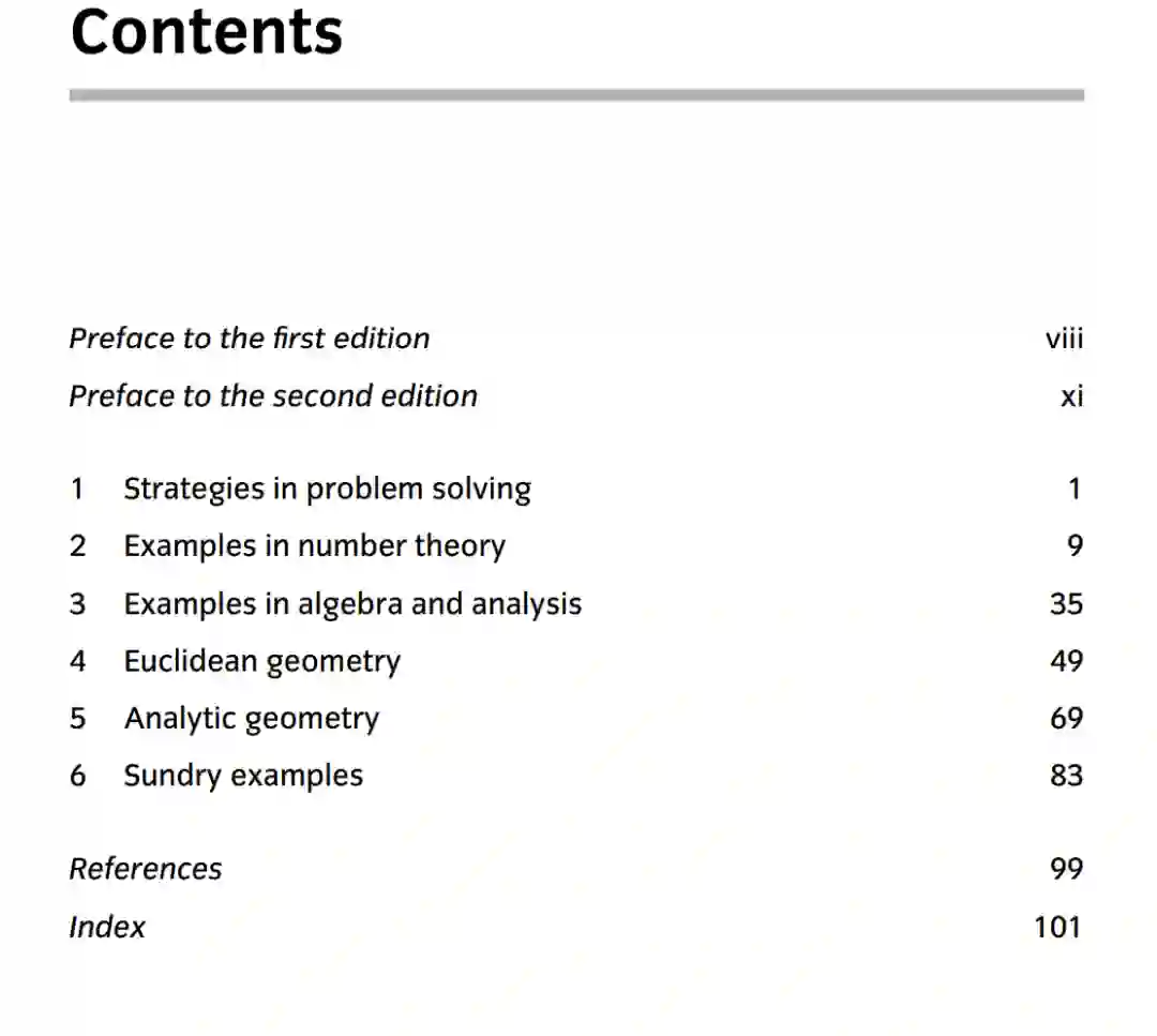 这本由数学领域著名专家撰写的书籍,以生动且清晰的方式引导读者掌握解决数学问题的各种策略,特别是针对数学奥林匹克竞赛的题目。书中涵盖了数论、代数、分析学、欧几里得几何和解析几何,并在全书中提供了大量练习题和示范解答。该书假设读者仅具备基础的数学知识,非常适合14岁及以上的纯数学学生使用。