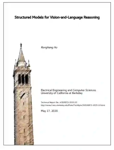 这篇论文用视觉和语言推理的结构化模型为上述问题提供了答案——这些模型的架构考虑了人类语言、视觉场景和代理技能中的模式和规律。我们从表达式的基础开始,我们在第二章中展示了通过考虑这些表达式中的组合结构,我们提出的组合模块网络(CMNs)可以实现更好的准确性和泛化。在第三章中,我们使用基于与问题推理步骤一致的动态组合模块的端到端模块网络(N2NMNs)进一步解决了可视化的问题回答任务。在第四章中,我们扩展了模块化推理的研究,提出了基于可解释推理步骤的堆栈神经模块网络(SNMNs)。模块化推理之外,我们也提出构建环境敏感的视觉表征与Language-Conditioned场景图网络(LCGNs)。第五章对于关系推理和解决问题的阅读文本图像的问答迭代pointer-augmented多通道变形金刚。在第六章,我们说明了嵌入任务也需要结构化模型,并在第7章中提出了说话者-跟随者模型,其中说话者模型和跟随者模型互为补充。在所有这些场景中,我们表明,通过考虑任务中的结构和输入模式,我们的模型的执行和泛化明显优于非结构化对应模型。