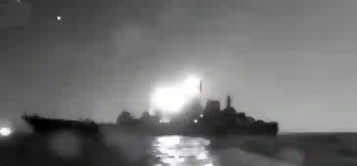 图:2023 年 8 月 3 日,一架乌克兰无人机在黑海新罗西斯克港攻击俄罗斯 “Olenegorsky Gornyak ”号登陆舰。(图片来源:Pictorial Press, Alamy Stock Photo)