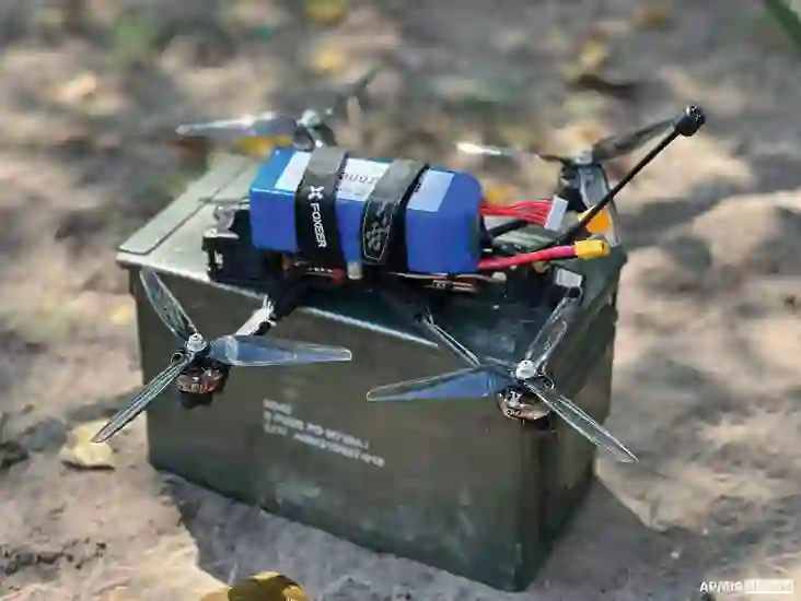 图:2023 年 7 月 21 日,乌克兰第 25 Sicheslavska 旅展示其简易第一人称视角攻击无人机。(图片来源:Army Inform,维基共享资源)