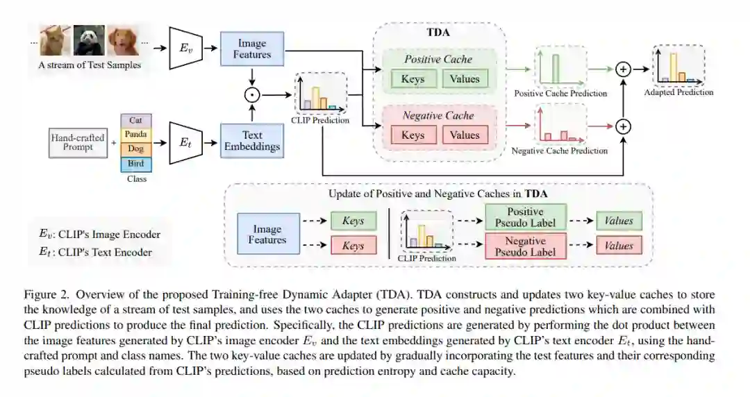 在测试时使用预训练的视觉-语言模型进行适应性调整已经吸引了越来越多的关注,以解决测试时的分布偏移问题。尽管之前的研究已经取得了非常有希望的表现,但它们涉及到的计算量非常大,这与测试时间的适应性调整严重不符。我们设计了TDA,一个无需训练的动态适配器,使视觉-语言模型能够有效且高效地进行测试时间的适应性调整。TDA利用轻量级的键-值缓存,维护一个动态队列,队列中的值为少量样本的伪标签,对应的测试样本特征作为键。利用键-值缓存,TDA允许通过逐步精炼伪标签来逐渐适应测试数据,这种方式超级高效,不需要任何反向传播。此外,我们引入了负伪标签,通过为某些负类分配伪标签来减轻伪标签噪声的不利影响,当模型对其伪标签预测不确定时采用。在两个基准测试上的广泛实验表明,与最先进的方法相比,TDA展示出了更高的有效性和效率。代码已在https://kdiaaa.github.io/tda/ 发布。