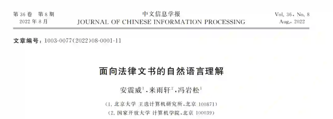 随着我国依法治国方略的实施,社会法治进程 稳步前进,通过法律手段维护社会公平正义、维护个 体权益已成为社会日常生活的重要组成。随之而来 的,则是法律领域从业人员需要处理的案件量显著 提升。据统计,我国各级人民法院一年受理诉讼案 件总数已超过3000万件[1],这对司法系统的稳定 运行提出了巨大挑战。法律人工智能将人工智能技 术应用于法律领域,可以在案件处理过程中为法律 从业者提供智能化服务,提升其工作实效。因此,近 年来法律人工智能技术受到学术界与产业界的广泛 关注。 法律案件审理过程的各个环节记录都会用文字 归档,相关法条法规及司法解释等官方文件也通常以文本形式呈现。这些以文本形式呈现的法律相关 文档统称为法律文书。法律文书是实施法律的重要 手段,忠实地记录着各类法律活动。在法律人工智 能中,面向法律文书的自然语言理解技术有着较高 的研究价值与广泛的应用前景。 自然语言理解技术在法律文书上有丰富的应用 场景,如类案检索、智能辅助司法裁判以及司法问答 系统等。 类案检索系统通过提供智能化的关键信息抽取 服务和文书检索服务,减轻了法律从业者在处理法 律文书方面的工作量,提升了整个司法环节的效率。 不同于基于浅层文本匹配的文书检索系统,智能文 书检索系统利用深度学习模型,引入法律要素、争议 焦点等法律知识,理解法律文书的深层语义信息,能 够提供更为准确和个性化的检索结果。 在司法裁判过程中,智能辅助系统可以提供包 含推理过程、可解释的判决预测结果,并附上相关统 计分析数据,为法官提供有价值的参考信息,提高其 工作效率,维护司法公正。 司法问答系统可以为更广泛的人群提供法律咨 询服务,让普通群众无须掌握专业的法律知识,也无 须支付高昂的法律咨询服务费用,依然能够便捷地 了解和学习法律知识,同时也降低了普通群众运用 法律维护自身权益的门槛。 自然语言理解技术在法律文书上的应用场景主 要涉及法律文书信息抽取、类案检索、司法问答、法 律文书摘要和判决预测五个任务。本文在第1节系 统地介绍了这些任务的形式,研究现状及难点。在 第2节中,本文针对处理法律文书面临的主要技术 挑战展开了深入分析和讨论,指出目前主要的挑战 包括:①处理法律文书中的语言与日常生活语言间 的表述差异性;②建模法律文书中特有的推理与论 辩内容;③将法条、推理模式等法律知识融入自然 语言理解模型的学习和预测过程。 法律文书一般指具有普遍约束力的规范性法律 文件(法律法规等)以及由国家司法机关、律师等依 法制作的具有法律效力的文件。表1展示的刑事案 件判决书就是一种常见的法律文书。不同于日常生 活中常见的文本,法律文书通常为半格式化文本,具 有一定的结构。例如表1的案件判决书包含案情描 述、法庭判决、相关法条等章节。在内容上,法律文 书以叙议为内容主体,具有层次分明的论辩结构,并 含有大量法律概念。这些特点要求面向法律文书的自然语言理解模型能够处理法律文书的常见结构, 理解法律概念,甚至应对一些推理任务。